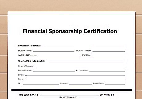 Obtain proof of your ability to pay for your stay. You must submit evidence of your financial solvency along with your application. This can come in the form of a sponsorship form (where another person promises the funds to cover your expenses), proof of a scholarship or grant that will cover your expenses, or proof that you have already paid for the expenses of studying abroad. If you go with the sponsorship option, keep in mind that they will need to sign a financial support declaration, provide notarized copies of an official government-issued identification document (like a driver’s license or passport), and offer evidence (such as tax returns, pay slips and/or bank statements) that can verify they have the means to cover your costs.
