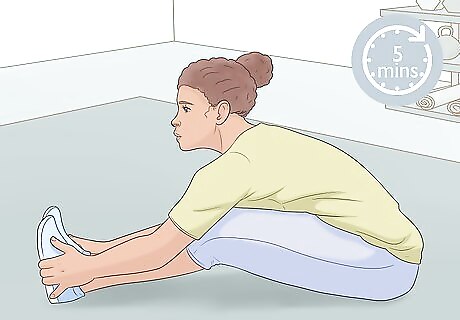 Cool down with at least 5 minutes of stretching after your workout. Stretching helps keep your body flexible and injury-free. It will also help cut down on post-workout soreness. Do some basic leg stretches, like toe-touches, lunges, and butterflies. Remember to stretch your back and arms, too. Try holding a stretch for about 30 seconds. When you're stretching, it should be mildly uncomfortable, but not painful.