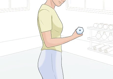 Start with light weights and focus on your lifting form. When weightlifting, start out with a weight that you can lift for 8-10 reps without being exhausted. If a weight is too heavy for you to lift while maintaining proper form, than it's too heavy for you to use. Try doing 3-5 sets of these repetitions. It can be helpful to take a weight lifting class, see a personal trainer, or watch videos on proper form to learn how to lift weights without injuring yourself.