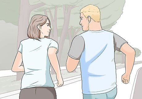 Find a workout buddy. Working out is way more fun if you do it with a friend, and you're more likely to actually get yourself to the gym if you know a friend is waiting for you. It's easy to flake on yourself, but if you know you're letting your friend down, you might find that extra bit of energy to get you in the gym door. Working out with someone is also a great way to bond and deepen your friendship.