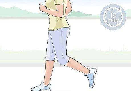 Start with 10 minutes of aerobic exercise and gradually increase. Endurance aerobic exercise, like biking, walking, running, and swimming, is super important for your heart health. Start with a manageable amount, such as 10 minutes per workout, and add on a few minutes per week. Completing a short workout can give you a sense of accomplishment, which helps you stay motivated to workout again, and possibly for longer, the next time. Eventually, aim for getting a total of 150 minutes (2 1/2 hours) of moderate to vigorous activity in a week.