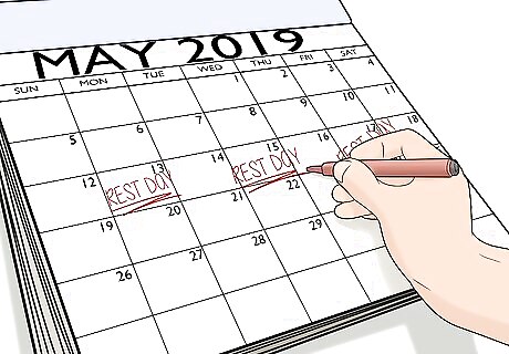 Schedule your workouts ahead of time. It can be hard to manage fitting workouts into a busy schedule, but if you already have them blocked off in your week, it feels less optional. When you're just starting, aim for 2 or 3 workouts in a week, and remember they can be short. Schedule in rest days between your workouts to let your body recover.