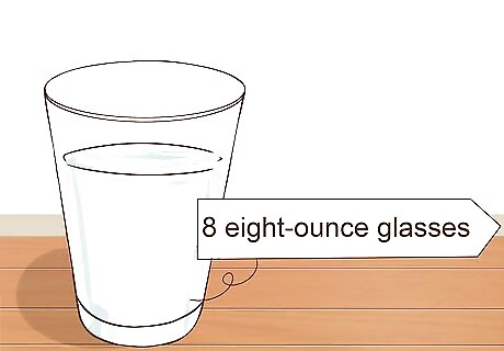 Stay hydrated. Make sure you drink plenty of fluids before, during, and after any exercise. Avoid drinking soda, and instead choose low-sugar drinks, such as watered down juice or tea. This isn’t an exciting goal, just a really important one for staying healthy. You should drink at least 8 eight-ounce glasses of sugar-free fluids on a normal day to stay hydrated, but will need more if you exercise that day, it’s really hot outside and you sweat, or if you’re sick.