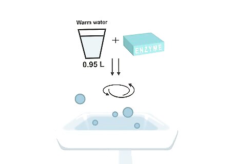 Mix 1 US quart (0.95 L) of warm water with 1 tablespoon (14.8 ml) of an enzyme presoak. You can find a container of enzyme presoak in the laundry section of any major grocery store. If you were able to remove the stain with just the dish soap, white vinegar, and rubbing alcohol, you can skip using an enzyme presoak.