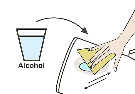 Use a cloth to blot the stain with rubbing alcohol. Start at the center of the stain and work your way out to the edge. Don’t apply too much pressure; you just want to gently lift the stain out of the garment using the cloth. Use paper towel if you can't find a cloth.