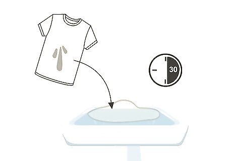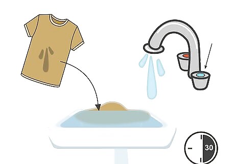 Soak the stained garment in cold water for 30 minutes. Use a bucket, sink, or tub, and make sure the stain is completely submerged in the water.