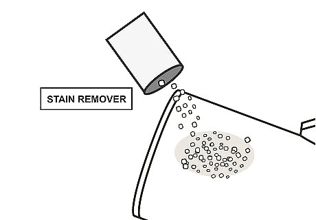 Apply a pre-treatment stain remover to the stain. You can find a pre-treatment stain remover in the laundry section of most major grocery stores. For aerosol spray stain removers, spray the affected area until the entire stain is covered. For liquid stain removers, pour a little of the stain remover onto the stain. Always read the directions on a pre-treatment stain remover before applying it to a garment.
