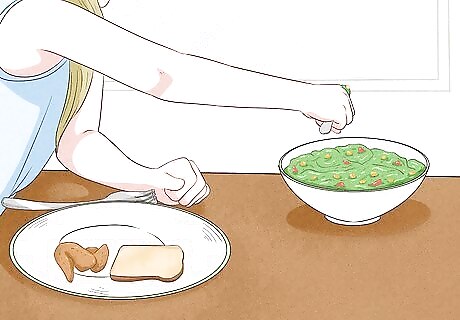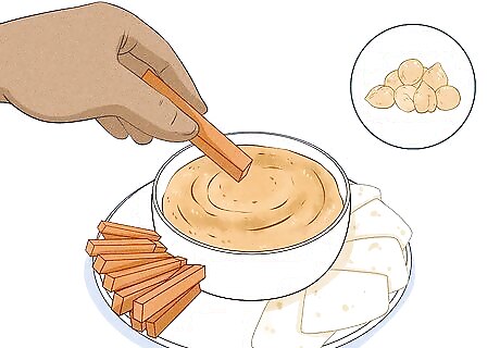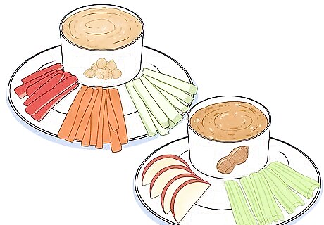 Make your own hummus. This is a great source of protein, and you can often puree vegetables in as well. All you need are chickpeas, oil, and a food processor. Add salt, pepper, and herbs & spices to make the dip your own.
