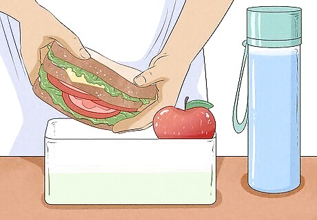 Pack your child's lunches with them to ensure you make a good, nutritious meal. Go over lunch together so that the feel like they have some agency in the meal. Aim to have one fruit or vegetable, a grain, and a source of protein, and don't feel bad about adding a small desert as well if you trust them to eat everything.