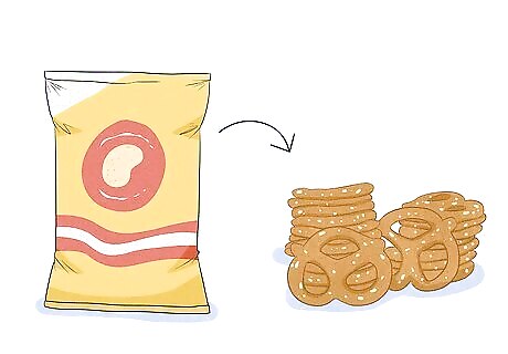 Stop buying junk food, except for special occasions. The parent is ultimately in charge of what food comes into the house, and if there is no junk food to eat, then your kids won't be able to eat it. Substitute healthier snacks for treats and candy, like fruits, pretzels, and hummus. While you don't have to completely cut out junk food, removing the temptation will make kids less likely to clamor for junk. Make desserts together at home, like a simple cake or chocolate cookies, to get kids more interested in their food and turn junk food into an activity, not an everyday occurrence. Studies show that making some foods "off-limits" makes them more desirable to kids. Don't eliminate junk food, just make it a "sometimes food."
