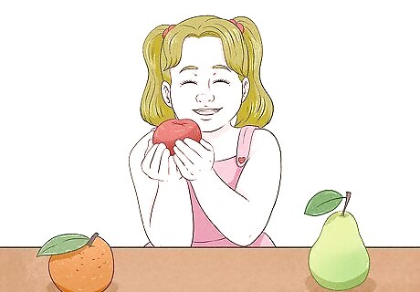Give your child multiple healthy choices. Telling them the need to eat an apple may turn them off, but giving them the chance to choose between grapes, apples, bananas, or an orange will excite them and make them feel in charge. The more often you give a child choices the more excited they will be to eat something you put in front of them.