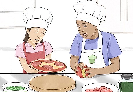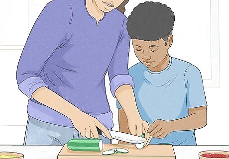 Bring your child in on the spicing. Spicing is a great way to get kids involved with making dinner their own. Right before adding spices, call your child over and ask them to smell different scents. Which ones do they like? Which ones do you normally mix together? The child can then feel free to make their own "special blend," customizing the flavor of chicken or fish to their liking. Remind them, however, that you only need a small pinch of spices to get a lot of flavor.