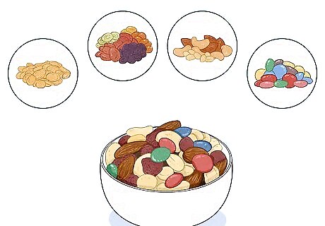Try making trail mix. Trail mix, customizable and naturally sweet, is a great on-the-go snack for picky children. It is usually a mixture of: Cereal Granola Dried Fruit Nuts A touch of chocolate.
