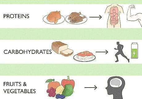 Explain why healthy food is important to everyone. Find ways to break down nutritional concepts so that kids can see why healthy food is so important. You'll be surprised at how quickly kids pick up on certain concepts, especially if you can relate it to their interests: Proteins found in chicken, fish, and beans make up your muscles and organs, and are essential for growing strong. Carbohydrates found in whole-grain bread, pasta, and rice provide you with the energy needed to move and be active, and whole grains have much more energy than white bread and processed (factory-made) sugars. Fruits and Vegetables contain vitamins and minerals that help your eyes, ears, and brain work to the best of their ability, and keep you from getting sick.