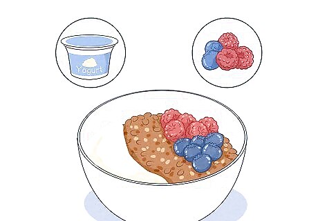 Mix granola, yogurt and fruit for a simple but diverse breakfast. Your child can choose between a variety of yogurt and granola flavors, and many fruits from bananas and apples to mango and berries will mix in as well.