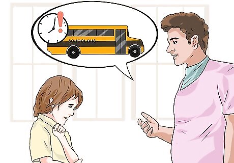 Explain your expectations with fair warning. It’s not fair to surprise a child by saying, “this room needs to be clean in five minutes.” Give the child time to understand the expectations, and to adjust their behavior. Very young children might not be able to fully understand units of time (such as, “in an hour” or tomorrow). However, you can still use these to make your expectations clear and help them learn. For example, you can say, “I need you to clean your room sometime today so that we can go to the park tomorrow,” or, “School starts in an hour, so you don’t have enough time to watch TV.” If there are going to be negative consequences, the child definitely needs enough time to feel like they had a fair chance. For example, you can say, “You have half an hour to get dressed, or you won’t be able to play with the hamster before school.” Half an hour is plenty of time for a child to get dressed, even if they take a few minutes to hem and haw about it.