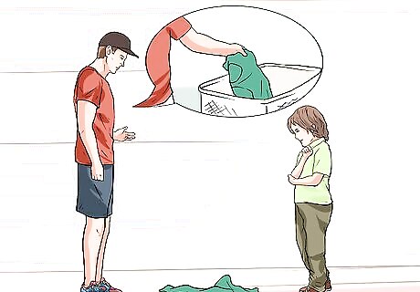 Describe the problem. Do this without assigning blame or expressing judgement. Simply state, in a calm tone, what you’re observing. You can also reference a request you made previously. Keep it simple. Instead of saying, “You left your clothes on the floor. I told you not to do that,” say, “I see clothes on the floor. Clothes need to go in the hamper.”