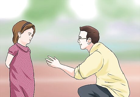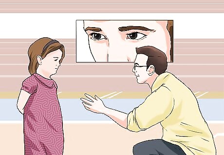 Make eye contact. Eye contact lets the child know that you’re listening and that you’re focused on them. It’s also a great way to see if they’re listening to you. If a child feels embarrassed or stubborn, they might not want to make eye contact, but if you stick with it, they may come around. Try to keep your gaze warm and non-threatening. If a child thinks you’re angry or trying to control them, they will probably be resistant. You can gently let them know that you’d like them to look you in the eyes. You can say, “I’d like for you to look at me,” or “When you don’t look at me, I feel like you’re not ready to have a conversation.”