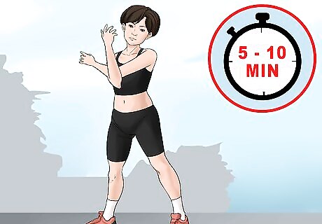 Keep it short. If you are totally overwhelmed with the idea of working out, then just commit to a short workout. Take five or ten minutes to walk, stretch, or do some lunges. Once you start, you may find that you want to keep going. For example, if the idea of running a mile seems daunting, go for a ten-minute walk and see how you feel.