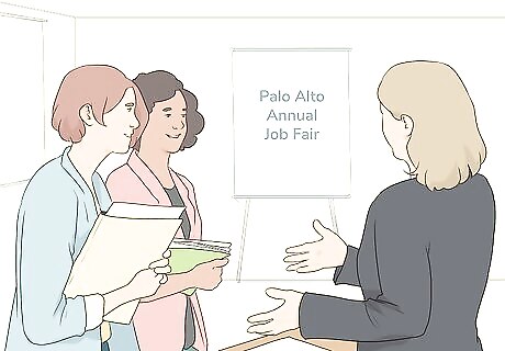 Attend local jobs events and introduce yourself to new people. Watch for these types of events by checking your local newspaper’s employment section and by contacting local universities. You can also ask friends and family to let you know when they hear about an upcoming event. If you hear about a community job fair or networking event, attend it! Bring business cards, resumes, and samples of your work (if applicable). Be friendly and introduce yourself to 3-5 new people at the event. Make sure to be yourself and don’t embellish your abilities. Be honest with people you meet about what you’re capable of doing and what kind of position you’re seeking.