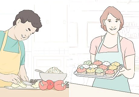 Sell baked goods or work as a kitchen assistant if you enjoy cooking. Whenever someone has a party or other big event, they might be looking for help with preparing the food. You could sell pre-made baked goods to people hosting big events, or offer your services as a kitchen assistant and help prepare the food for the event on site. Try making a list of baked goods you are good at making so that people who might want to hire you can see their options. You could advertise your services on social media and on local classified websites.