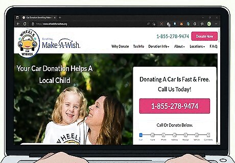 Donation lets you get rid of your car and give back to the community! Search online for charities that accept non-running cars. Select a charity and sign up online to have your car picked up, or call the charity directly to make an appointment. The charity will come and collect your car, after which they’ll likely refurbish and sell it to someone in need at a reduced price. Make sure the charity is eligible to receive tax-deductible contributions. A few popular examples include Wheels for Wishes (benefitting the Make-a-Wish foundation), Kars4Kids, Habitat for Humanity, and Goodwill Car Donations. Before donating, use Kelley Blue Book or Edmunds to find your car’s market value. When it comes time to file taxes, it’s your job to know the car’s value—not the charity’s. Once the car has been collected by the charity, make sure they send you a written acknowledgment that you can use to claim a tax deduction. File your taxes by claiming a deduction up to $500 on Form 1040EZ (if your car is worth less than $500) or by itemizing the return and deducting the full selling price of your car (if the car is worth more than $500).