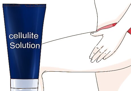Try cellulite-fighting lotions and creams. Many women have had success using cellulite creams and other topical treatments. These products nourish and tighten skin to diminish the visible effects of cellulite, restoring firmness. Cellulite-fighting products won’t serve as a magic bullet, and they aren’t a permanent fix, but they can be useful for supplementing a positive routine consisting of a healthy diet and frequent exercise. Get in the habit of applying a cellulite serum as part of your daily routine. Two specific products that are recommended by dermatologists are Nerium Firming Body Contour Cream and Biotherma Celluli Eraser. Both are on the pricier, side, but have been shown to effectively counteract cellulite in problem areas like the thighs.