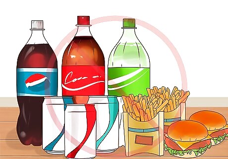 Cut out junk food. Calorie dense foods that offer no real nutritional value are largely to blame for making cellulite worse. Say no to fast food meals, processed sugar products (candy, soda, sports drinks, etc.) and excessive carbohydrates like bread, pasta and potatoes. Stick to whole natural foods in balanced portions, namely lean meats, fruits, vegetables and whole grains. In just a short time of clean eating, you’ll notice those annoying cellulite dimples becoming less pronounced. Preparing and refrigerating your meals in advance can spare you the headache of always having to find something to eat. When you buy food, read the labels carefully. Even foods marketed as “natural” or “organic” can contain shocking amounts of added sugar, salt and trans fats.