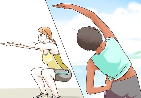 Overcome sedentary behavior. Reverse the effects of sitting all day by spending more time on your feet, even if that just means standing up to work. Make use of frequent breaks to walk around, get your blood pumping and do a few repetitions of squats or lunges. Take the stairs instead of the elevator. At home, stretch out or do some challenging static poses rather than just posting up on the couch. Simply put, find ways to move your body more. Every little bit helps. Limit the amount of time you spend doing things like watching TV throughout the week. Give yourself reasons to move when you otherwise wouldn’t. For instance, walk to the mailbox to collect the day’s mail instead of grabbing it as you drive by, or stand up more often when you’re at work or talking on the phone.