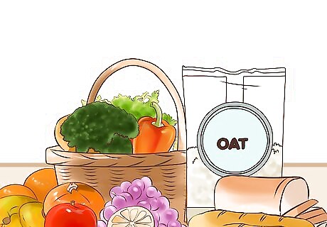 Eat more fiber. Consume foods that are rich in dietary fiber, such as leafy vegetables, oats and bread products made with whole grains. As part of the digestive process, fiber is used to sweep fats, toxins and other waste products out of the body. More fiber means more efficient digestion, which can help you metabolize more calories and cut down on fat storage in the future. Broccoli, brussel sprouts, carrots, bananas and raspberries, along with things like oatmeal and whole wheat bread in moderation, all make great sources of dietary fiber. Avoid sugary processed food items like sweetened breakfast cereals and snack crackers, even if they claim to be made with whole grains.
