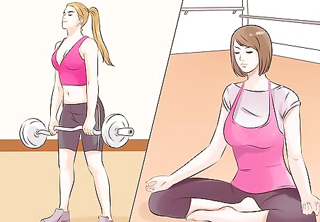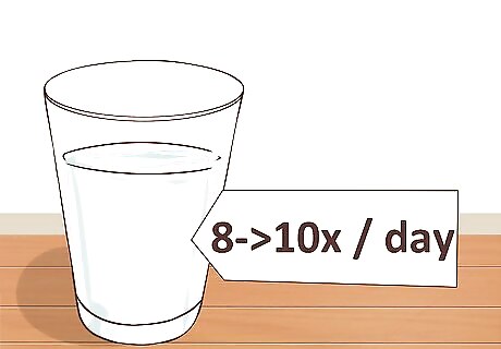Stay hydrated. Proper hydration is critically underrated when it comes to health and wellness. Not only is water a vital part of every cell in your body, it also improves bodily functions and keeps you feeling capable and alert. Water flushes out toxins, repairs damaged tissues and even uses up a small amount of calories to process. Try to drink at least 8-10 cups of water a day, or more if you’re engaged in strenuous physical activity. One good way to tell if you’re getting enough water is to check the color of your urine throughout the day. If it’s relatively clear, it means you’re keeping fresh water cycling through your system. If it’s cloudy or yellow, you may need to up your fluid intake. If you’re tired of only drinking water all the time, switch it up with unsweetened green tea or coffee. Just make sure you’re getting enough liquids. Caffeinated drinks are diuretics, meaning they'll cause you to urinate more frequently.
