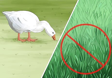 Grow your grass taller. Geese like to feed on young grass shoots. By growing your grass taller, at least 6 inches, you may be able to get the geese to feed somewhere else. Let your grass grow taller in the winter, and limit the amount of watering and fertilizing you do in the spring. If you have a pond on your property, let the grass grow up to 20 inches to prohibit geese from gathering around it. Let the grass grow several feet across the property. Your property will look shaggy, but the geese will likely search for another nesting area. Geese prefer open spaces where they can see predators and feel safe. Tall grasses disrupt this feeling of safety.