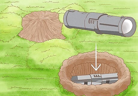 Build an underground barrier. Thwart mole tunneling by digging an obstructive trench in your yard. Dig down about 2 feet deep and 6 inches (approximately 15 cm) wide to cover enough area to have an impact. Fill this trench with impenetrable material likes rock or concrete, or fill it with wire. This is an effective but labor-intensive way to protect your flower or vegetable garden from moles.