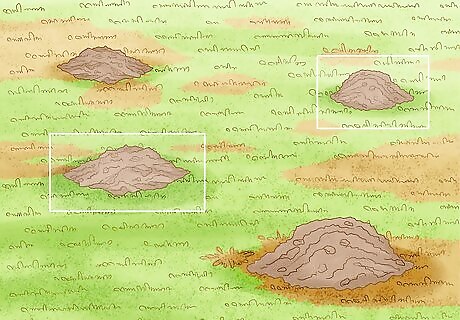 Look for mounds of dirt. If you suspect that you might have moles in your garden, look for mounds of dirt on the surface of your grass. Moles will typically leave heaps of dirt the size of baseballs or softballs when tunneling. Check daily as these mounds can appear quickly as moles make their way through the yard. A typical mole might make between 50-100 mounds in a single month. EXPERT TIP Steve Masley Steve Masley Home & Garden Specialist Steve Masley has been designing and maintaining organic vegetable gardens in the San Francisco Bay Area for over 30 years. He is an Organic Gardening Consultant and Founder of Grow-It-Organically, a website that teaches clients and students the ins and outs of organic vegetable gardening. In 2007 and 2008, Steve taught the Local Sustainable Agriculture Field Practicum at Stanford University. Steve Masley Steve Masley Home & Garden Specialist Moles burrow around your yard to make tunnels. You'll see raised mounds of dirt meandering around your yard when you have a mole. They often dig up seedlings and loosen the soil, but they usually eat worms and insects.