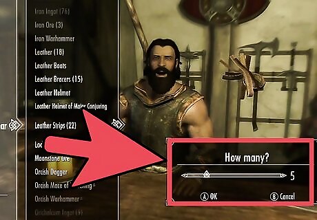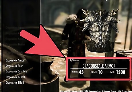 Get the items for the recipe. The Dragonscale armor set composes of five parts, namely: the chest plate, boots, gauntlets, helmet and the shield. To get the complete set, you’ll need the following: 14 Dragon Scales — This can be bought from merchants all over the game for 3 Gold. 4 Leather — This can be bought from merchants all over the game for 10 Gold. 2 Iron Ingot — This can be bought from merchants all over the game for 7 Gold.