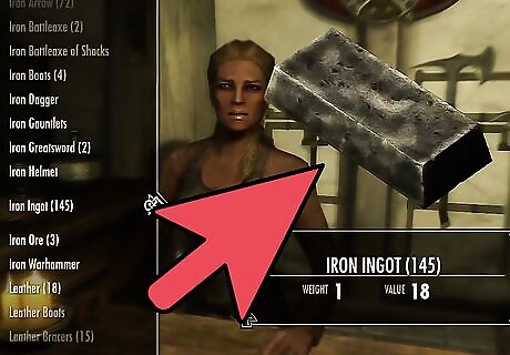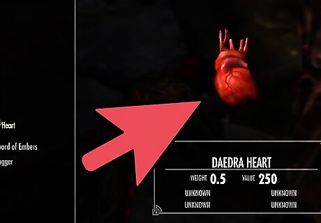 Get the items for the recipe. The Daedric armor set composes of five parts, namely: the chest plate, boots, gauntlets, helmet, and the shield. To get the complete set, you’ll need the following: 10 Leather Strips — This can be bought from merchants all over the game for 3 Gold. 17 Ebony Ingots — This can be bought from merchants all over the game for 150 Gold once your character reaches level 27. 5 Daedra Hearts (for each piece of the set) — This can be obtained by killing a Dremora inside the Shrine of Mehrunes Dagon located at The Pale, one of the nine “Holds” in Skyrim.