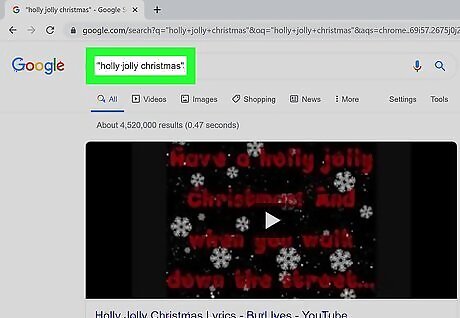 Add the modifiers (-) and (" ") to make your searches more specific. Entering the minus symbol (-) directly before a word specifically excludes it from your search. Alternatively, putting a string of words within quotes searches for that precise string of words in that precise order. A search for "holly jolly christmas" will look for that exact string of words in that exact order. Meanwhile, a search for holly jolly -christmas will look for results that specifically exclude the word “Christmas.”