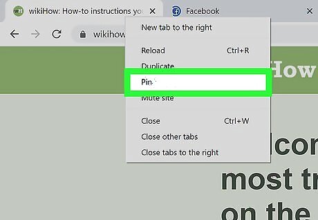 Pin tabs to prioritize them and restore tabs you accidentally close. If you tend to keep numerous tabs open at once, pinning the most important ones can be very helpful. Simply right-click the tab header at the top of the screen and select “Pin.” This will keep the tab at the “top of the pile” of your open tabs. If you close a tab without meaning to do so, simply right click in the blank space along the top of the browser window where the tab label was. Select “Reopen closed tab” and the tab will reappear right where it was before.