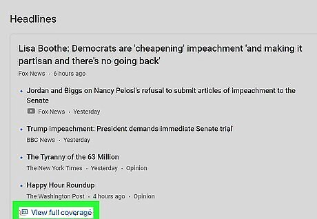 Use the Full Coverage feature in Google News to get a broader view of a topic. Whenever you open a news story in Google News, look for the “Full Coverage” tab with the multi-colored icon next to it. Clicking on this will open up a list of a wide range of news items dealing with that same topic. This is a great feature if you’re trying to get all sides of the issue on a political controversy or divisive social debate.