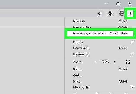 Browse in incognito mode to conceal your history and cookies. Click the 3-dot tab at the top right of the browser window, then choose “New incognito window.” When using this incognito window, neither your browsing history nor browsing cookies will be saved. However, this does not mean that your browsing is hidden from your employer or the websites you visit. Incognito mode can be very useful, for instance, if you share a computer with your significant other and don’t want them to know what presents you’re ordering for their birthday.