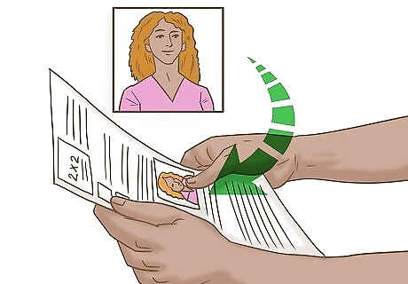 Get a clear passport photo of your face. The photo is an important part of your passport, but you will also need a recent passport-style photo for the visa application. The photo needs to be approximately 13 in (33 cm) by 19 in (48 cm) in size. The photo must clearly show your face against a light-colored background. It also needs to be printed on photo-quality paper. Your head needs to be uncovered in the photo. If you want to get into China, you can’t even wear head coverings for religious reasons. The Chinese officials won’t accept it. Keep your face in a neutral expression, neither smiling nor frowning during the photo. You can usually get a good photo by visiting a nearby post office, print shop, or drug store.