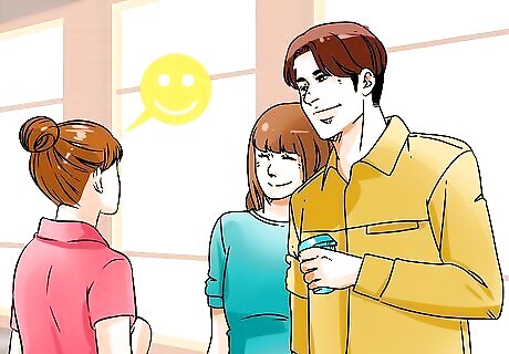 Be friendly. When talking about your relationship, either with your ex or with friends, you should be pleasant and friendly. You want to project a nice image, someone that other people, such as your ex, would want to like. Don't be threatening or insulting. While there may still be bad feelings, belittling your ex won't make her like you. Additionally, negative comments about your ex when she is not around can make others wonder how you treat them behind their backs. Don't discuss your relationship with your ex when others are around. While the conversation may be necessary, especially if you want to be friends, don't do it with other people around. That can make others uncomfortable, and make you look desperate and mean. Support your ex's new relationships. Chances are your ex will move on. A good way to be pleasant, and show her you want to be friends, is to be supportive of any new relationship she starts.