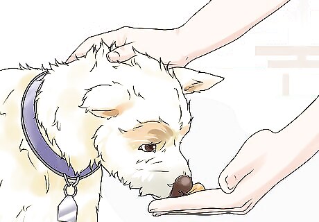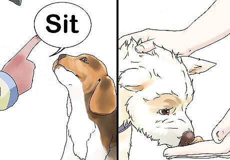 Combine varied treats with petting to train your dog. Switch up the type of treat you use when training your dog in order to keep its interest. When training your dog, you’ll want to avoid just being a treat dispenser. As you offer a treat, pet your dog and give it verbal praise so it learns to value touch and praise as rewards. Your goal should be to eventually substitute food treats for petting and praise completely. Otherwise, your dog will always expect a food treat when you give a command. The treat will then become more of a bribe than a reward.
