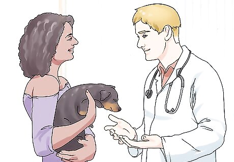 Consult with your dog’s veterinarian. If you have any questions or concerns about offering your dog a treat, talk to your dog’s vet. Your vet can let you know how much your dog weighs and its daily caloric needs. This information will help you better estimate the right amount of calories from treats to offer your dog daily. Ask your vet, "How many calories does my dog need every day? Does the food I give it provide all of its nutritional needs? Do you suggest any nutritional supplements?" The vet can also help you rule out any food allergies your dog might have. Say, for example, "I made my dog a treat at home last night, and chicken was an ingredient. He liked it, but seems to be itchy and have irritated skin. I know dogs can be allergic to chicken, so would you recommend an allergy test?"