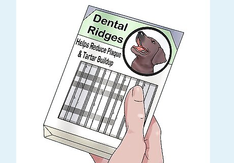 Look for dog treats with nutritional or dental benefits. When you purchase store bought treats, be sure to go for varieties marked specifically for dogs. Check labels to see if they have any added nutrients or dental benefits. Most dog foods completely meet dietary needs, but you should ask the vet about offering treats with added nutrients if your dog has a dull or brittle coat, dry skin, shifts in weight, or a low energy level. Regularly offering harder chew treats that remove plaque will help prevent tartar buildup and oral disease. Ultimately, the best treat for your dog is one that will be a high value reward and that can motivate them when necessary.