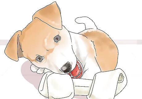 Offer aggressive chewers knotted rawhides. If your dog is a power chewer, you should offer it rawhide or pork hide treats to prevent it from chewing your belongings. Go for knotted varieties over flat rawhides. Knotted rawhides will keep your dog’s attention (and keep from becoming a soggy, disgusting mess!) longer than flat ones.