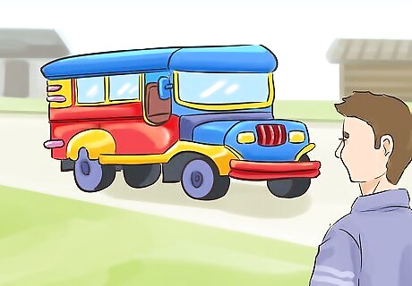 Catch a Jeepney from the heart of Tagaytay to take you to Sky Ranch. Jeepneys are colorful buses that are used to get around Manila. Go to the Olivarez Plaza in Tagaytay and catch a Jeepney headed towards the Coastal Mall. This will take you right to the gates of Sky Ranch. You could also take a taxi to Sky Ranch or drive there if you have a car. Sky Ranch is roughly an hour's walk away from the heart of Tagaytay, so you should take a bus, Jeepney, or car when you can.