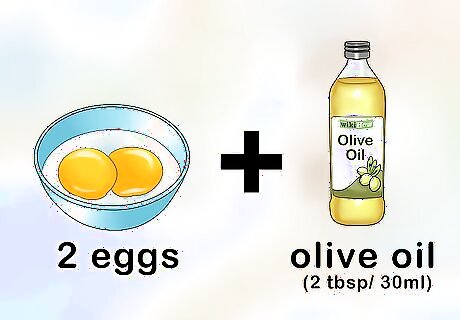 Try an egg yolk mask. An egg yolk mask is great for people who experience a lot of hair breakage. The lecithin and protein in eggs will help strengthen, nourish, and heal damaged hair. To make an egg yolk mask, combine 2 eggs and 2 tablespoons (30 ml) of olive oil. You can add 0.5 cups (120 mL) of water if the combination is too sticky for your taste. Apply the mask to dry hair, and leave it on for 30 minutes. Shampoo and condition your hair in cool water to fully remove the mask. Repeat this mask once a week. If your hair is chin length or shorter, you can cut the ingredients in half to reduce wasted product. Make sure you rinse with cool water. Warm or hot water can cause the egg to start cooking, making it harder to remove.