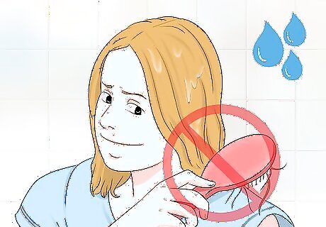 Avoid brushing wet hair. Brushing and combing your hair too much can lead to breakage. This breakage can increase even more when your hair is wet. Wait until your hair is completely dry to brush or comb it. If you can’t wait for your hair to dry, apply a detangling product and run a wide-tooth comb through small sections, starting at the ends of the hair and working toward the scalp.