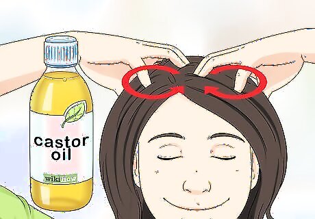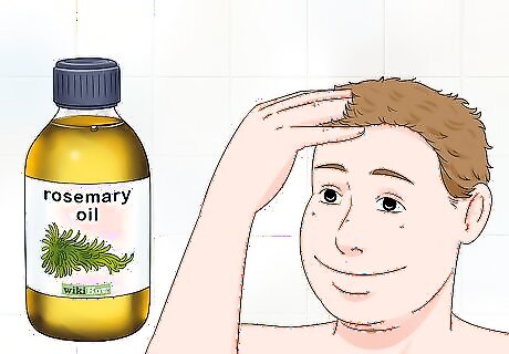 Give yourself a scalp massage with rosemary oil. Combine a few drops of rosemary oil with a few drops of another oil—like olive or coconut oil. Then, massage the oil into your scalp for 2 to 5 minutes. The massage will increase blood flow to the scalp, strengthen your roots, and get nutrients to your follicles faster. The rosemary oil will dilate the blood vessels to help the follicles stimulate growth. You can massage your scalp every evening. If you want to give yourself a scalp massage in the shower, it’s also an option to combine a few drops of rosemary oil with your regular shampoo. You should only give yourself a scalp massage with rosemary oil once a week if you have oily hair.